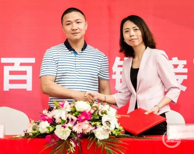 汉纺织大学校企合作促进会签约仪式,右一为武汉纺织大学机械工程与自动化学院党委副书记卫东妹,左一为凯发K8天生赢家一触即发电气集团智慧城市建设有限公司总经理韩文