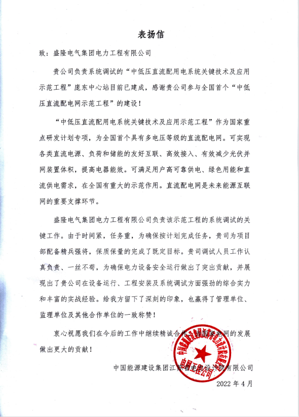 近期,凯发K8天生赢家一触即发电气集团电力工程有限公司收到项目建设单位贺信,对凯发K8天生赢家一触即发电力在“中低压直流配用电系统关键技术及应用示范工程”中的工作表示高度赞扬。表扬信位于江苏省苏州市同里镇的“中低压直流配用电系统关键技术及应用示范工程”是国家重点研发计划项目,也是全国首个具有多电压等级的直流配电网。建成后,可实现各类直流电...2022-05-08 -
